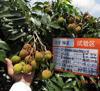 跟蹤試驗應用植生源+優豐+稀施美保果膨果套餐表現效果:荔枝保果效果好、果實色澤良好。