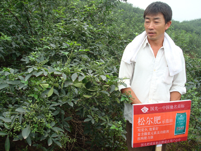 青花椒的施肥量: 不同生長時期對肥料的需求量有一定的差異。歸納為每年苗期需要純氮20-40g、純磷10-20g、純鉀10-20g、有機肥1-2kg;每年盛產期青花椒樹需要純氮200-400g、純磷100-200g、純鉀200-400g、有機肥2-10kg,另外青花椒果實對鈣的需求量較大,在收獲前其對鈣的需求量是所有養分中的最大量,每年的補充量基本相當于純磷的需求量即100-200g