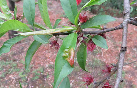 桃樹縮葉病主要為害葉片,嚴重時也可以為害新梢和幼果。
