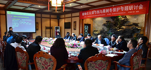 2016年12月3日,由中國農藥發展與應用協會植物生長調節劑專業委員會主辦,國光股份承辦的“植物生長調節劑新應用、果樹冬保護專題研討會”在四川成都召開。全國農業技術推廣服務中心農藥與藥械處處長王鳳樂、中國農藥發展與應用協會副秘書長花榮軍、全國農業技術推廣服務中心防治處高級農藝師李萍、中國農藥發展與應用協會植物生長調節劑專業委員會主任胡興啟、中國農業大學農學院教授、長江學者、植物生長調節劑專家段留生以及四川、河南、山東、江蘇、陜西、福建、湖南、湖北、廣西等省的省植保站站長、省農業科學院、林業科學院的研究員、教授等17人參加研討。
