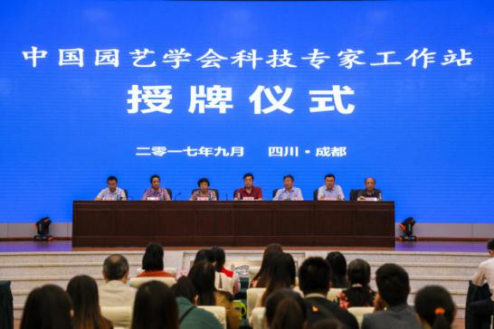 中國園藝學會副理事長王有年代表中國園藝學會向國光授予了科技專家工作站的牌匾,參會專家領導與國光眾高管進行了合影。