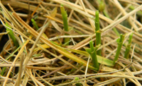 1.年發生代數 一年4-5代,在山東和浙江經調查都是如此。以蛹在土下3-5厘米處越冬。(以危害白三葉為例:2代開始(7月上旬)在三葉草草坪上開始為害,出現一個個蟲團;3、4代(8-9月)為害加重,為主害代,并出現世代重疊,能成片成片吃光草坪,使綠化景觀效果遭受到嚴重的破壞。)